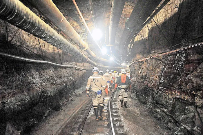 Mineworkers make their way down a tunnel at Sibanye Gold’s Ya Rona shaft, level 33, in Carletonville.Photo: Supplied Mineworkers make their way down a tunnel at Sibanye Gold’s Ya Rona shaft, level 33, in Carletonville.Photo: Supplied