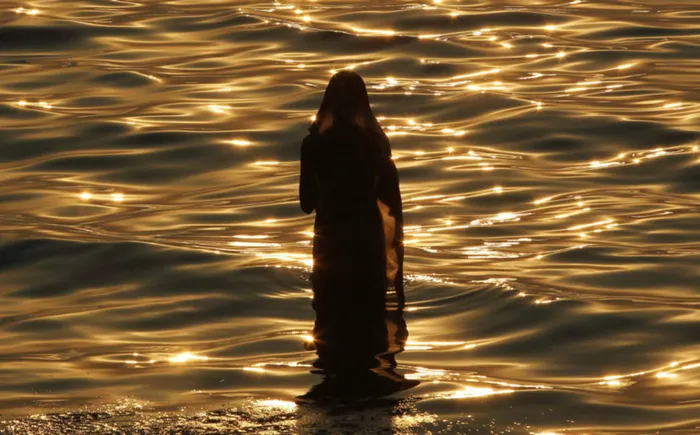 An Indian Hindu women offers prayers to the setting sun during the festival of Chhath at the Arabian Sea, in Mumbai, India, on Tuesday. An Indian Hindu women offers prayers to the setting sun during the festival of Chhath at the Arabian Sea, in Mumbai, India, on Tuesday.