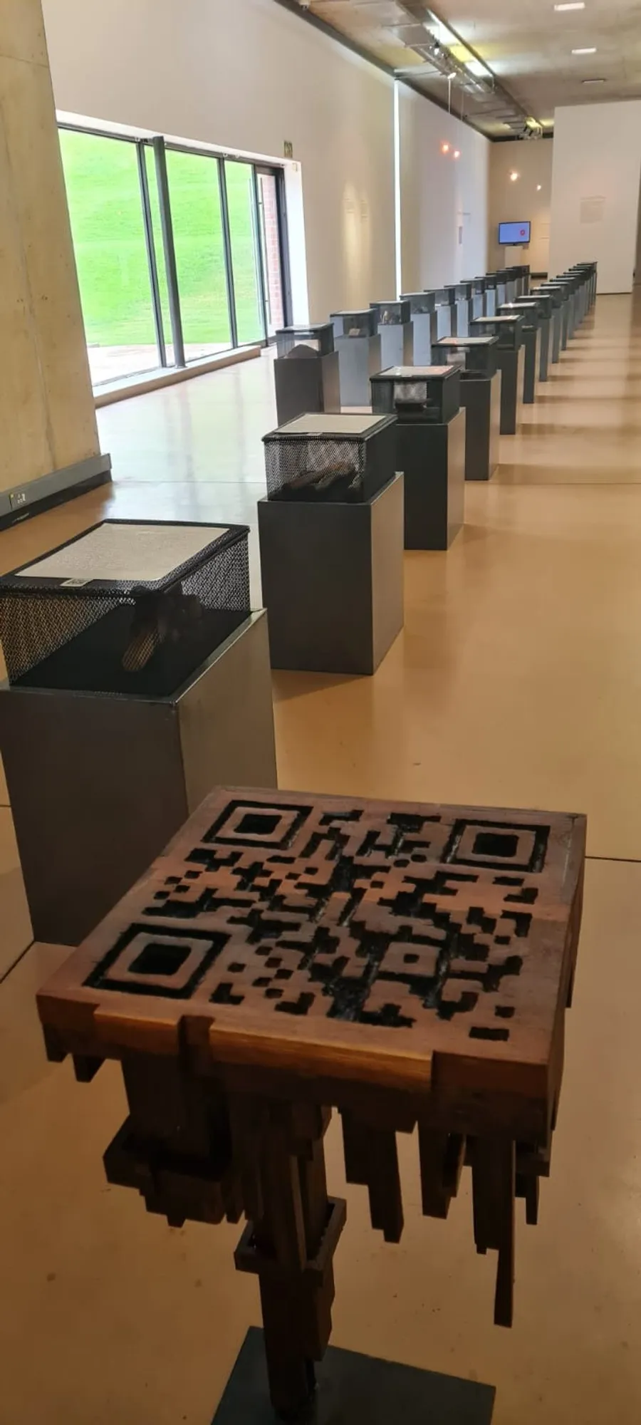 Pretoria-based artist, Selwyn Steyn, winner of the 2020 Emerging Artist Development Programme with his “Memetic Sculpture: A Speculation on Cultural Contagion”, was commissioned to create new three-dimensional work in the form of a QR code for this exhibition.