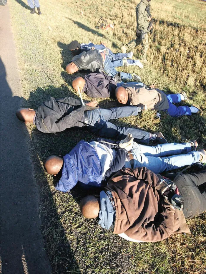The gang were allegedly on their way to commit a cash-in-transit robbery when stopped. Earlier this week, two bystanders were shot in a shoot-out between police and robbers during a cash-in-transit heist in the Springfield and Parlock areas. At least five suspects were killed. One bystander suffered major vascular and abdominal injuries while another was hit in the arm.