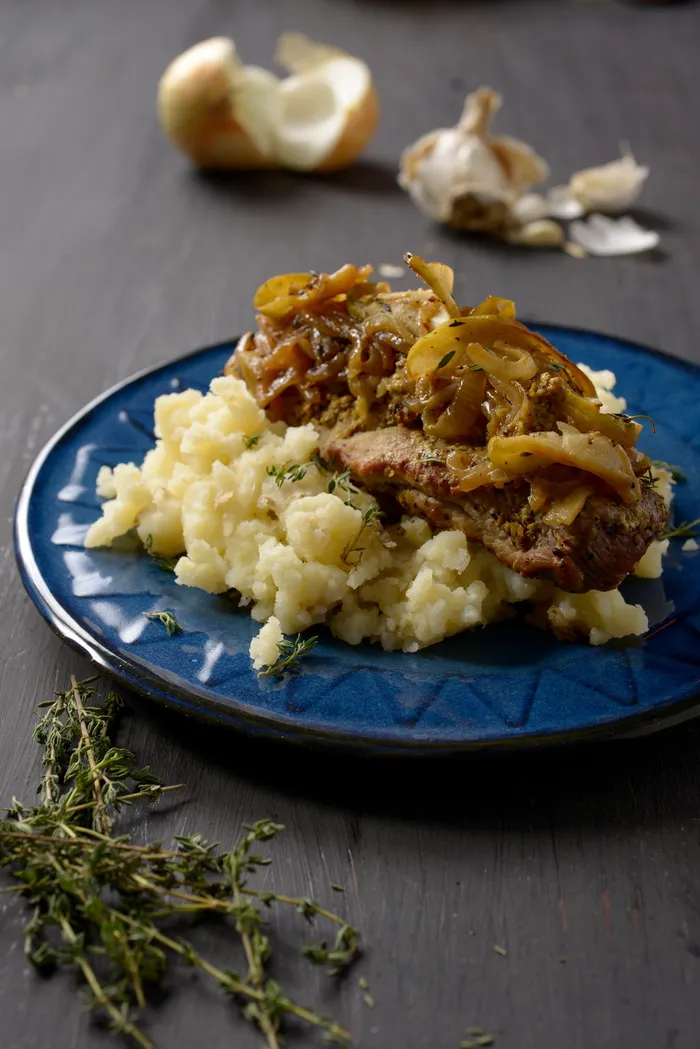 Mashed potatoes with roast pork fillet & apple relish. Picture supplied Mashed potatoes with roast pork fillet & apple relish. Picture supplied
