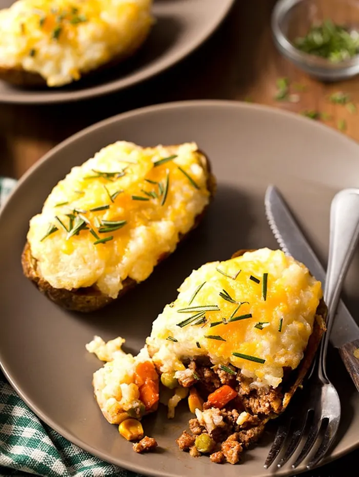 Spoon or pipe the mashed potatoes on top of the beef mixture and bake until heated through and the potatoes are brown on top, about 15 minutes.