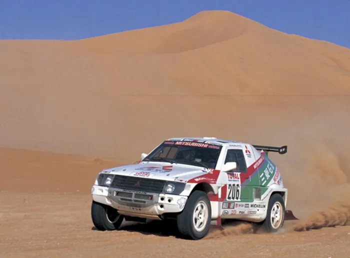 Bruno Saby, winner of the 1993 Dakar Rally, in the Algerian desert. File photo: Mitsubishi Bruno Saby, winner of the 1993 Dakar Rally, in the Algerian desert. File photo: Mitsubishi