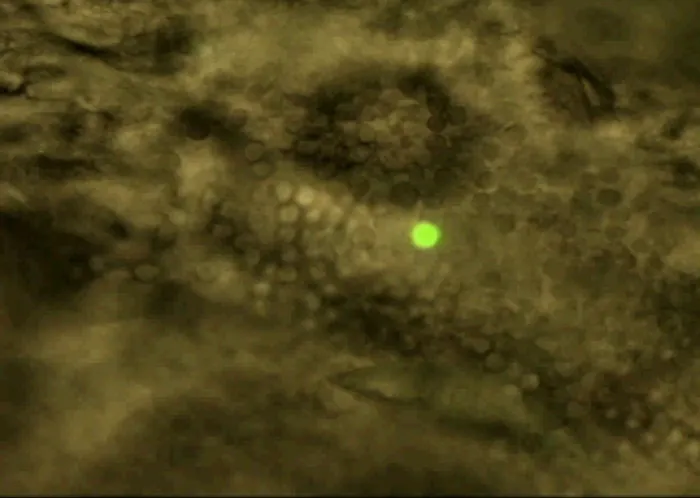 Undated handout image shows a single glowing hematopoietic stem cell in its natural environment at the edge of bone marrow in a section of mouse scapula. Stem cells, the master cells that make bone marrow transplants such useful therapy for cancer and other conditions, hide out at the edges of bone marrow, U.S. and Japanese scientists reported on January 30, 2006. FOR EDITORIAL USE ONLY REUTERS/University of Michigan Medical School/Douglas Engel, Ph.D,./Handout Undated handout image shows a single glowing hematopoietic stem cell in its natural environment at the edge of bone marrow in a section of mouse scapula. Stem cells, the master cells that make bone marrow transplants such useful therapy for cancer and other conditions, hide out at the edges of bone marrow, U.S. and Japanese scientists reported on January 30, 2006. FOR EDITORIAL USE ONLY REUTERS/University of Michigan Medical School/Douglas Engel, Ph.D,./Handout