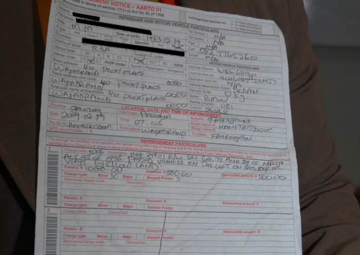 A woman holds the traffic fine she received. Picture: Damaris Helwig A woman holds the traffic fine she received. Picture: Damaris Helwig