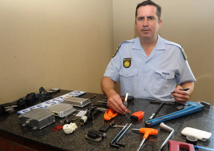 4.6.2012 Warrent Officer Johan Kleinhans shows car theft equipment confiscated from five arrested suspected car theft syndicate members. Picture: Etienne Creux 4.6.2012 Warrent Officer Johan Kleinhans shows car theft equipment confiscated from five arrested suspected car theft syndicate members. Picture: Etienne Creux