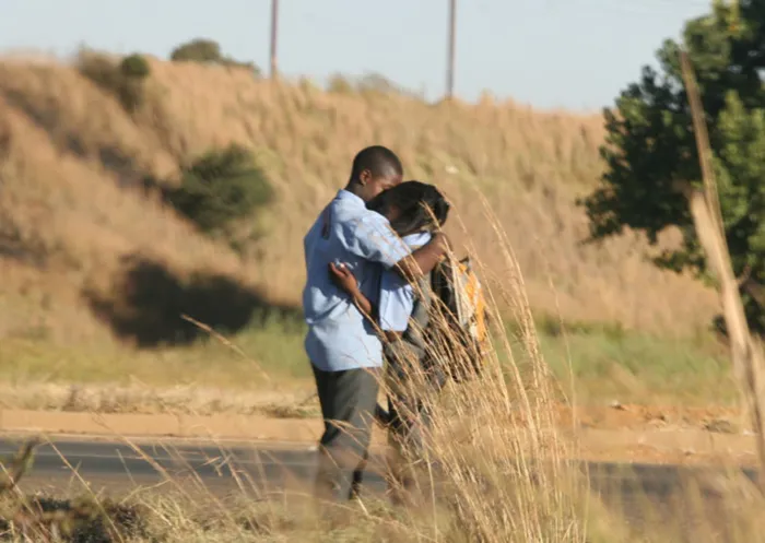 Kissing: School love birds still in the school Uniform Kissing along the Golden Highway in Orange Farm. Teenage Pregnancy is rife in South Africa. photograph by Sydney Seshibedi 20/03/2007 Kissing: School love birds still in the school Uniform Kissing along the Golden Highway in Orange Farm. Teenage Pregnancy is rife in South Africa. photograph by Sydney Seshibedi 20/03/2007