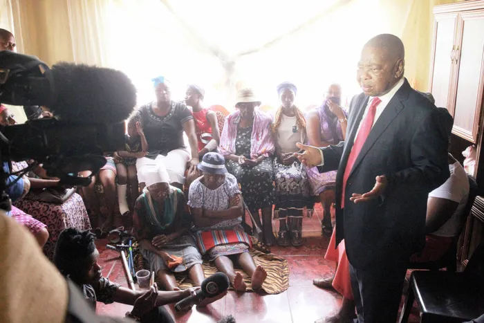Minister of Transport Dr Blade Nzimande addresses the Sekoma family in Soshanguve, which lost parents Dick and Sarah Sekoma during last week’s train crash at Mountain View station. Jacques Naude African News Agency (ANA) Minister of Transport Dr Blade Nzimande addresses the Sekoma family in Soshanguve, which lost parents Dick and Sarah Sekoma during last week’s train crash at Mountain View station. Jacques Naude African News Agency (ANA)