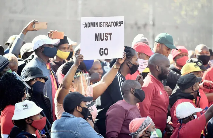 A file picture of striking municipal workers protesting outside Tshwane House. Thobile Mathonsi/African News Agency (ANA)