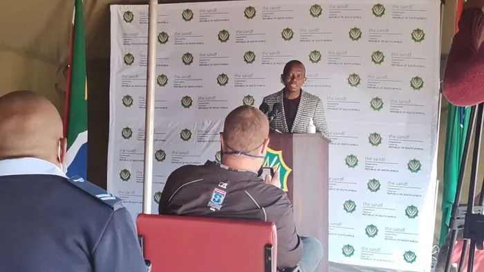 SANDF Spokesperson Siphiwe Dlamini announces the postponement of the Covid-19 vaccination programme launch. Picture: Goitsemang Tlhabye