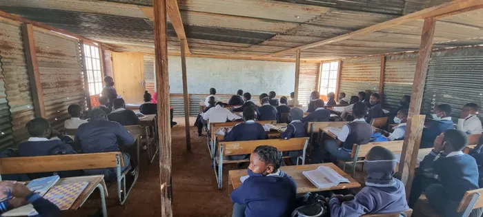 Classes have resumed in Dibeng village, Ga-Matlala in Limpopo after the community dismantled corrugated iron from a dilapidated Dibeng Primary School and built shacks as classrooms. Picture: Mashudu Sadike
