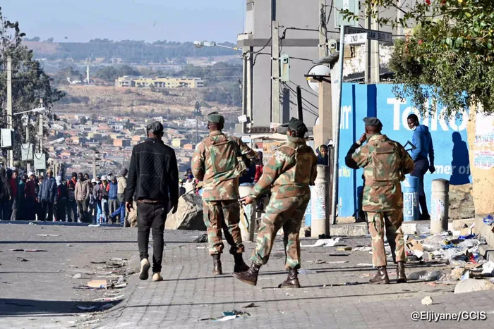 Members of the South African National Defence Force (SANDF) on patrol in Alexandra during the unrest. Picture: GCIS