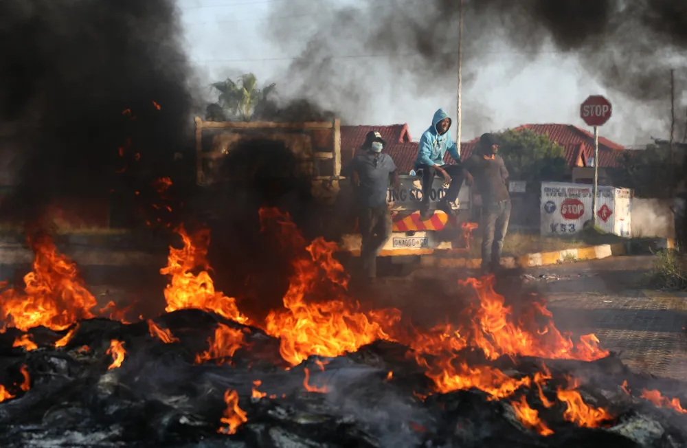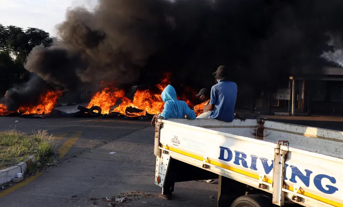 Tyres burn at the Mabopane Licensing Department which is one of those that have closed due to the ongoing strike and protest by driving school operators. Picture: Oupa Mokoena/African News Agency (ANA)