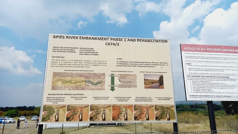 "Together with the City of Tshwane we have implemented the first phase of the Apies River stormwater and rehabilitation project, which means that the flood lines are not set in an engineered position. It is perfectly natural, you cannot even notice where the new flood line is and where the old flood line used to zig-zag because it is also rehabilitated 35 hectors of open space below the flood line, which will become part land.