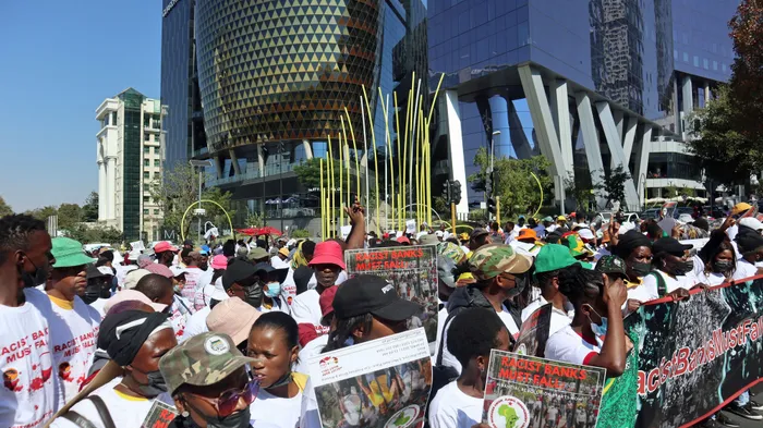 Protesters participate in a march against South African banks. Picture: Timothy Bernard/African News Agency (ANA)