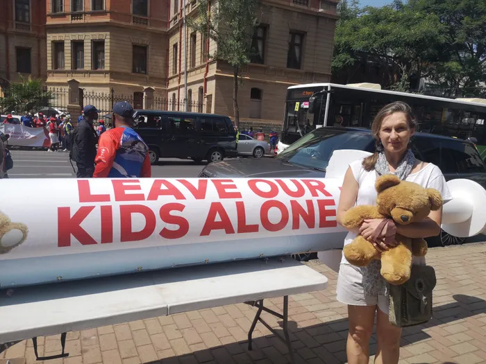 One of the parents outside court to protest against the administering of Covid-19 vaccines to children aged 12 to 17. File picture: African News Agency (ANA)