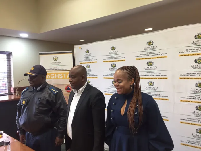 From left: Major-General Willy Mashavha, Coghsta MEC Basikopo Makamu and Health MEC DR Phophi Ramathuba. Picture: Mashudu Sadike