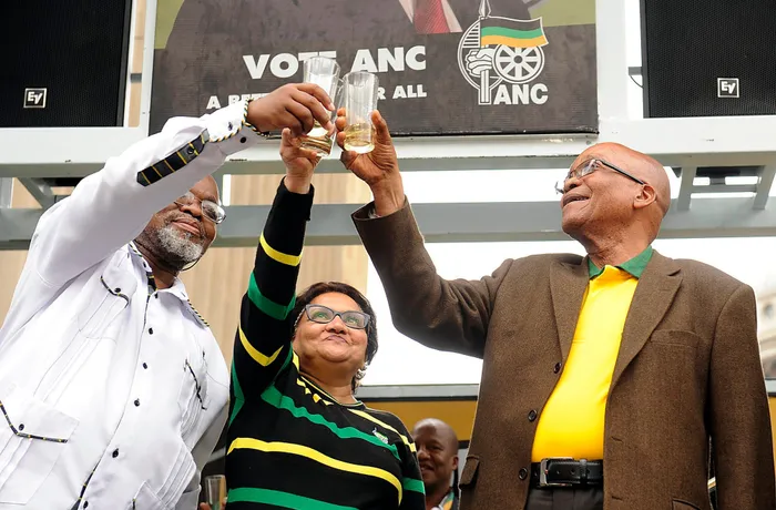 Gwede Mantashe, his deputy Jessie Duarte and President Jacob Zuma as he was celebrating his birthday outside Lethuli house.602 Picture: Matthews Baloyi 2014/04/14