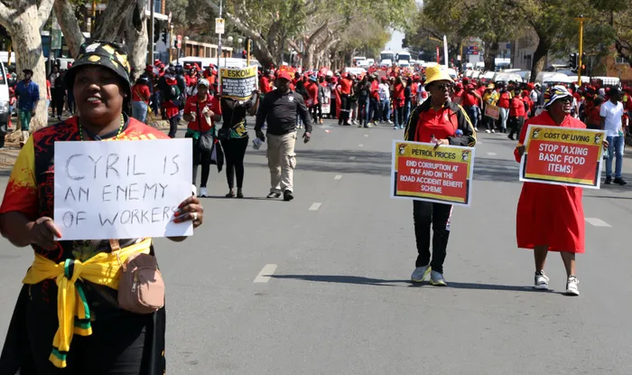 Workers affiliated to Cosatu and Saftu march in Pretoria during the national shutdown against the rising unemployment rate and the high cost of living. Picture: Oupa Mokoena/African News Agency (ANA)
