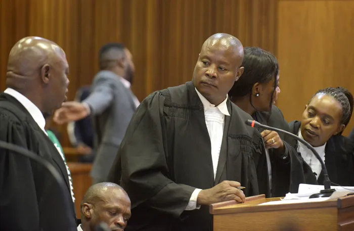 State prosecutor advocate George Baloyi with defense counsels advocates TT Thobane and Zandile Mshololo in the Senzo Meyiwa murder trial. Picture: Thobile Mathonsi/African News Agency (ANA)