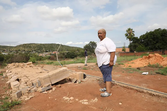 Miranda Matlou next to her demolished structure on her land in Mabopane. Picture: Oupa Mokoena /African News Agency (ANA)