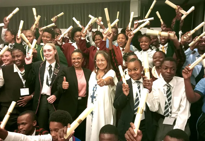 Minister of Public Works and Infrastructure Patricia De Lille with some of the beneficiaries of her department’s bursary scheme yesterday. Picture: Thobile Mathonsi/African News Agency (ANA)