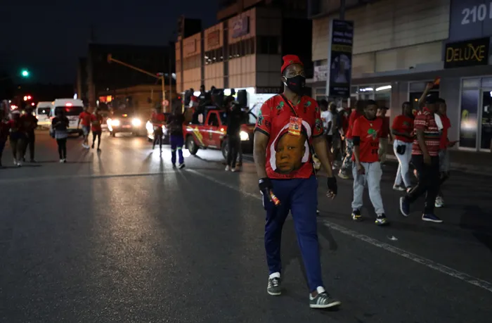 Members of the EFF mobilising people to join the national shutdown in the Pretoria CBD. Picture: Oupa Mokoena /African News Agency (ANA)