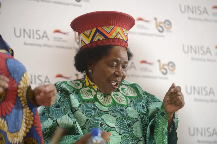 Minister in the Presidency Responsible for Women, Youth and Persons with Disabilities, Dr Nkosazana Dlamini Zuma, dances during the Inaugural memorial lecture of Dr Miriam Makeba held at Unisa. Picture: Thobile Mathonsi/African News Agency (ANA)
