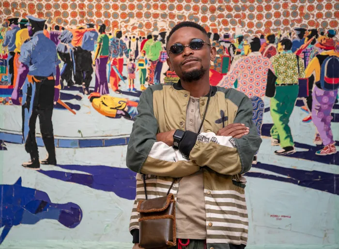 Mondli Mbhele with one of his artworks. Picture: Supplied