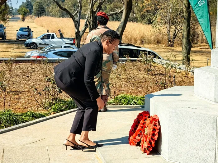 City of Tshwane Deputy Mayor Nasiphi Moya lays wreaths in honour of SA soldiers who perished in the Battle of Delville Wood. SUPPLIED