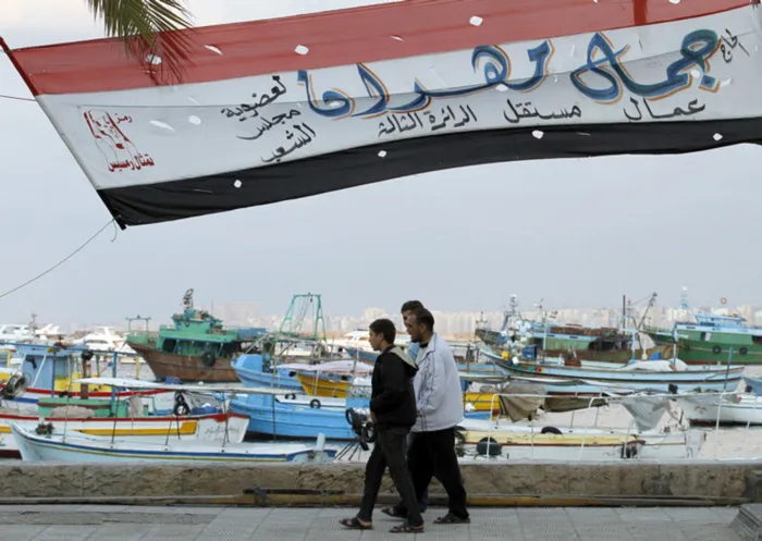 People walk under an electoral banner ahead of the parliamentary elections, in Alexandria. People walk under an electoral banner ahead of the parliamentary elections, in Alexandria.