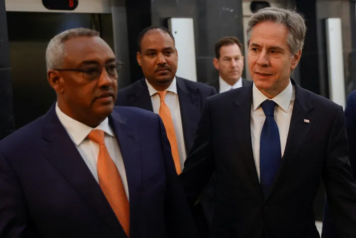 United States Secretary of State Antony Blinken, right, met with Ethiopian Deputy Prime Minister and Foreign Minister Demeke Mekonnen in Addis Ababa, Ethiopia on March 15, 2023. Picture:Tiksa Negeri/ REUTERS
