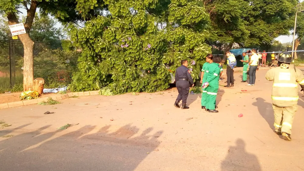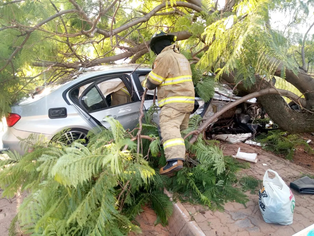 “Emergency services arrived on scene to find multiple patients scattered around the scene with the sedan under a partially collapsed tree. The driver of the sedan could not be found at the scene of the accident,” said Mabaso.
