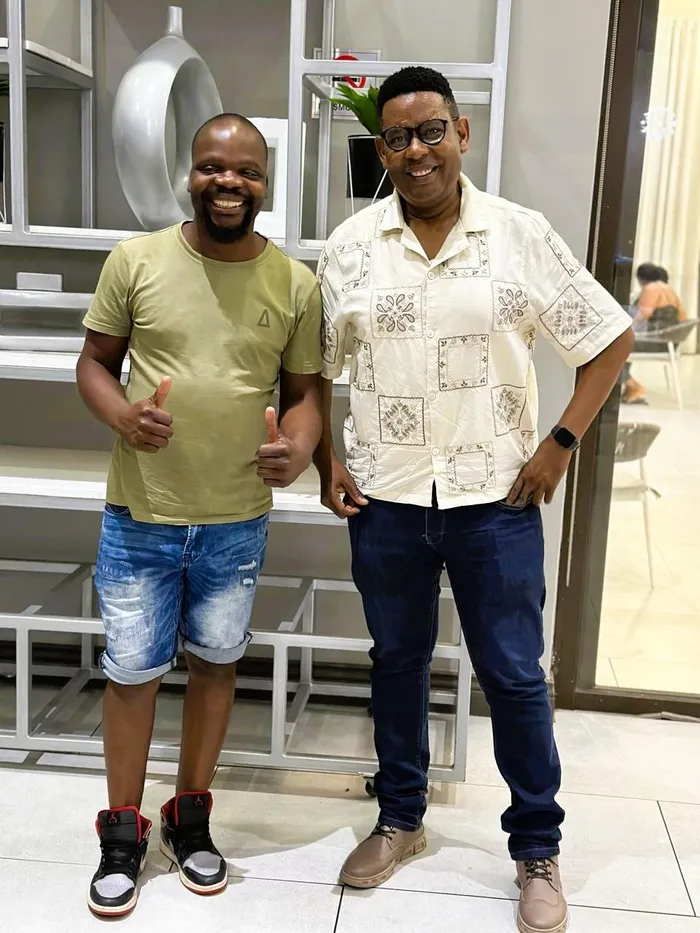 The late journalist Aserie Ndlovu posing for a picture with veteran communications specialist Motlhabane Skade at the African Media and Communicators Forum's end of year networking session in Midrand, in December 2024.