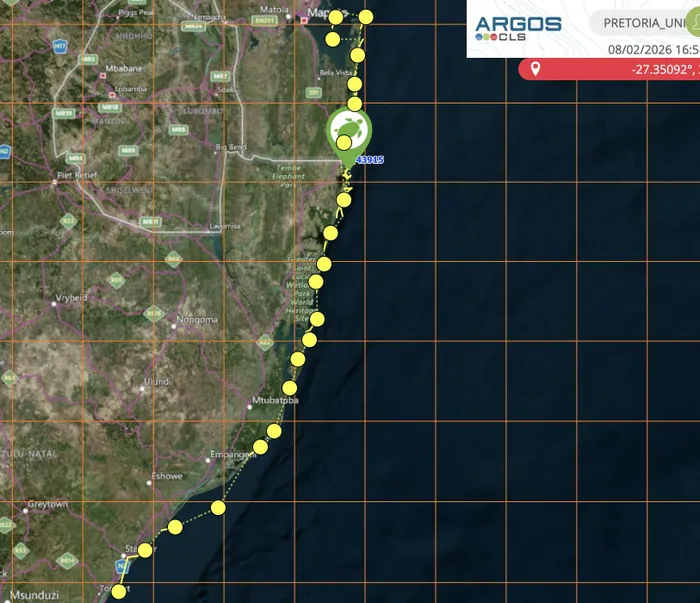 The devices were to allow the South African Association for Marine Biological Research (Saambr) to follow her movements and gain valuable insights into her behaviour post-release as part of a local and global sea turtle tracking database.