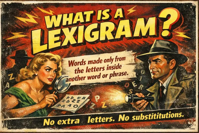 A lexigram is a word made up using only letters inside another word or phrase.