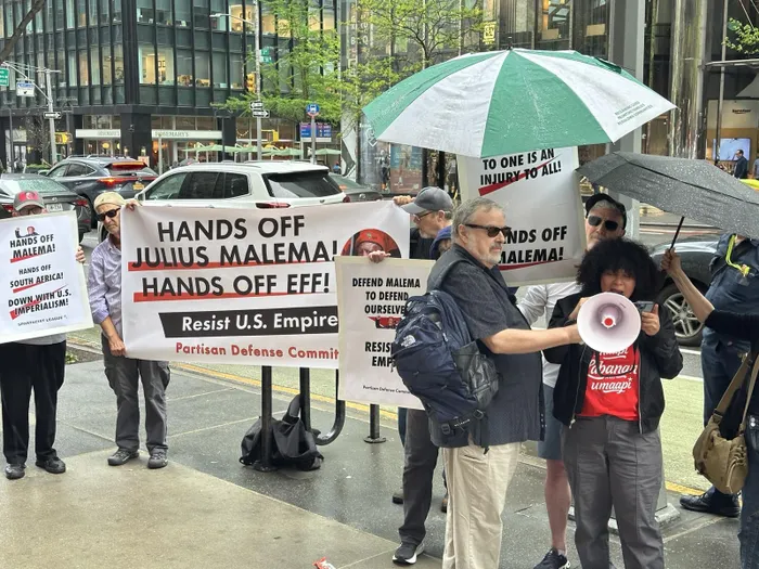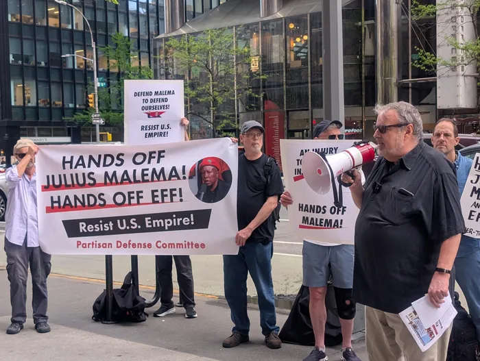 A small protest dubbed "Hands Off Malema" took place in New York City on Sunday, drawing together activists linked to the Partisan Defense Committee (PDC), the Spartacist League, and the Internationalist Group.