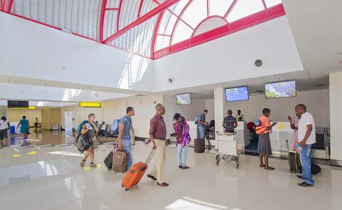 Visitors checking into the Victoria Falls International Airport's rehabilitated domestic terminal. File Photo: Tami Walker