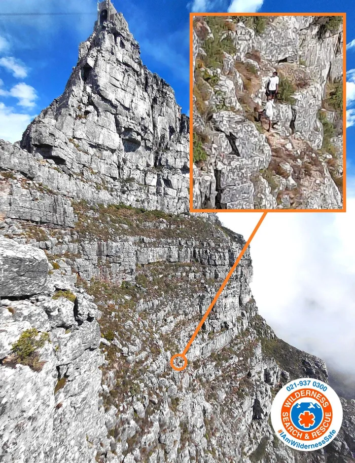 On the way down, the pair lost the marked trail and continued descending toward Camps Bay. The terrain became increasingly steep, leaving them cliffed out and unable to move safely forward or retreat.