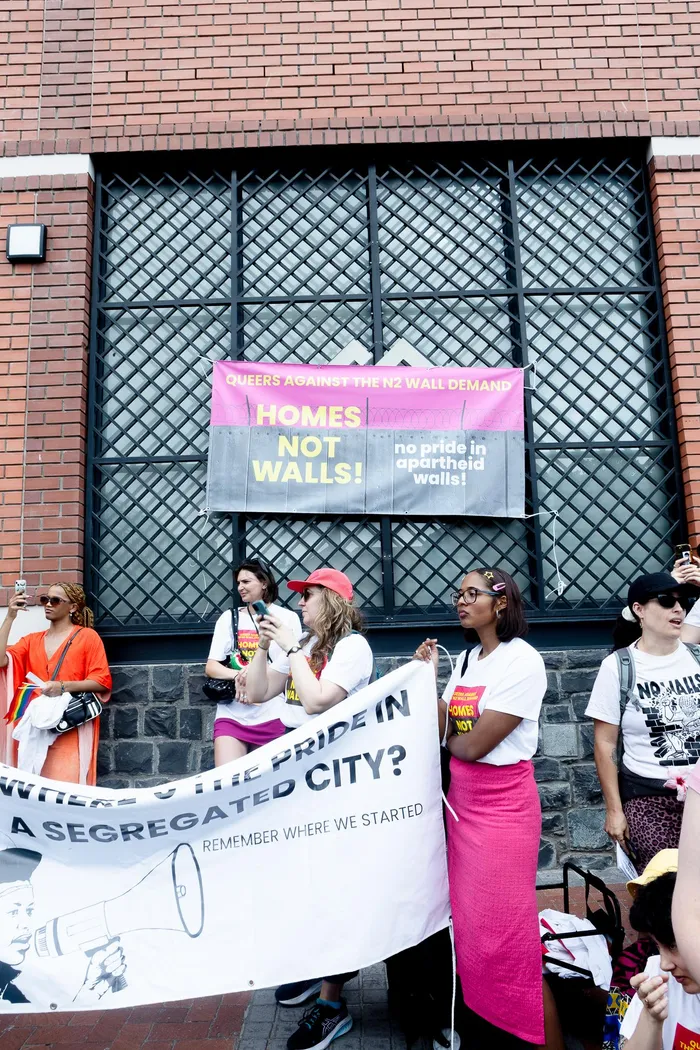 “Some of us queer people will not accept that. Being queer also means standing with oppressed people, and we just won't tolerate the DA, who come to pride, pinkwashes, and say they're standing for some people's human rights, but then what about communities living in Khayelitsha and on the Cape Flats who will be impacted by this wall.”