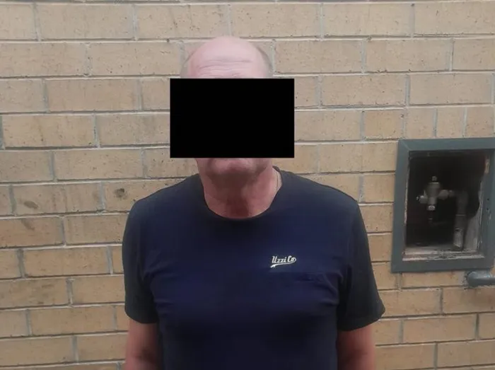 Bust shot of a man A 57-year-old man was arrested for possession of a stolen motor vehicle, an Opel Kadett, in Radiokop, Roodepoort. His face is obscured because he had not appeared in court. Picture: JMPD