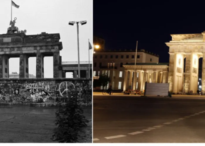 A combination photo shows (L-R) tourists posing in front of the Berlin Wall at the Brandenburg gate in Berlin in this June 6, 1989 file image and a general view of the Brandenburg gate in Berlin, August 3, 2011. The German capital is marking the 50th anniversary of the building of the Berlin Wall, which was erected on August 13, 1961. A combination photo shows (L-R) tourists posing in front of the Berlin Wall at the Brandenburg gate in Berlin in this June 6, 1989 file image and a general view of the Brandenburg gate in Berlin, August 3, 2011. The German capital is marking the 50th anniversary of the building of the Berlin Wall, which was erected on August 13, 1961.