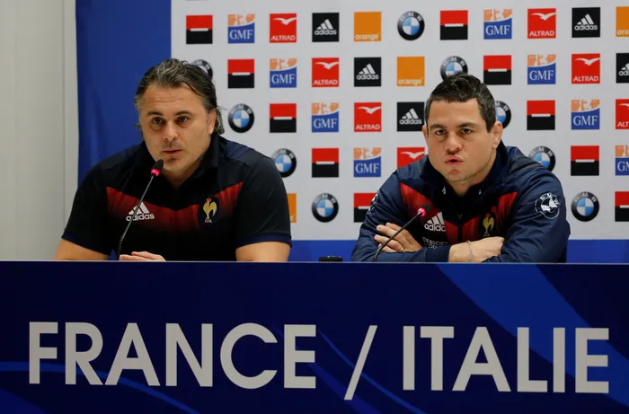 France forwards coach Sebastien Bruno and captain Guilhem Guirado speak at a press conference on Thursday. Photo: REUTERS/Jean-Paul Pelissier France forwards coach Sebastien Bruno and captain Guilhem Guirado speak at a press conference on Thursday. Photo: REUTERS/Jean-Paul Pelissier