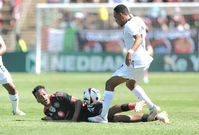 Patrick Maswanganyi scored a brace for Orlando Pirates against Richards Bay in their Nedbank Cup round of 32 clash on Sunday at King Zwelithini Stadium in Durban. | Sibonelo Ngcobo Independent Media