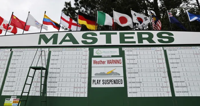 The scoreboard at The Masters during a weather delay While there will be countless articles about how great the first major of the year is, this will not be one of those stories. Picture: Erik S. Lesser/EPA