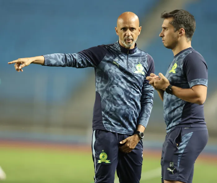 Miguel Cardoso, left, coach of Mamelodi Sundowns will be eager to make a quick return to Caf Champions League final to fix last season's shortcomings.