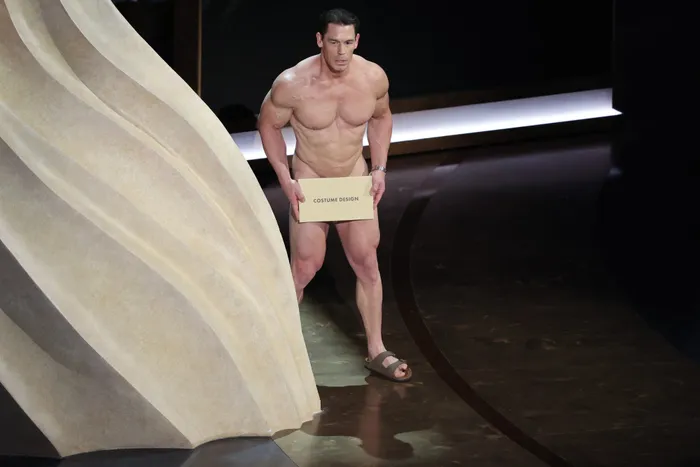 John Cena presented at the Oscars naked with just an envelope to cover his modesty.