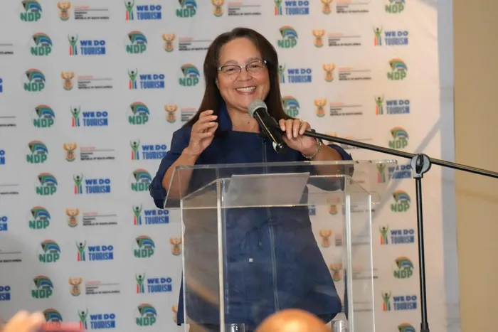 Tourism Minister Patricia de Lille at the media launch of Meetings Africa 2024 in Sandton. Picture: Supplied