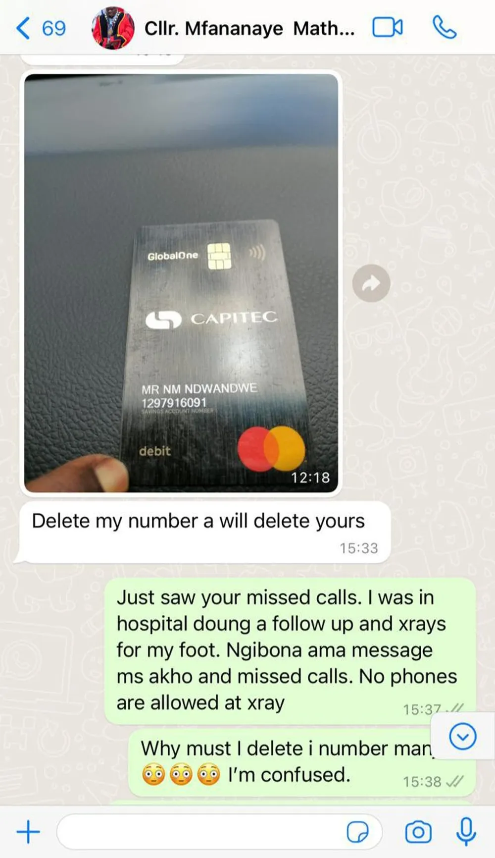 Mthembu said it all started when she received a text message from Mathe with an attached Capitec bank card that had an account number and the name of the account holder, to which she was supposed to make a cash deposit.