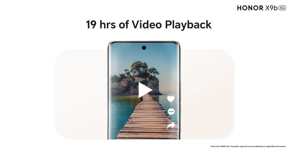 With the HONOR X9b 5G, users can also enjoy up to 19 hours of undisturbed video content on a single charge.
